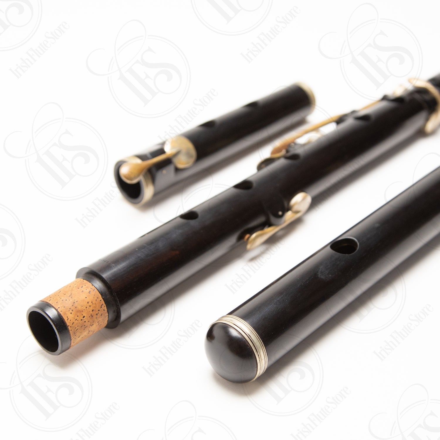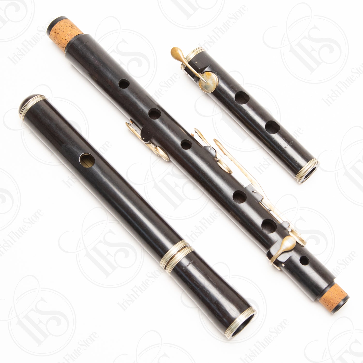 The flute is in really nice shape with no cracks. Six brass keys with what appears to be a clear coat over the brass. The keys have been cleaned up but retain some natural patina from age, which gives the instrument a handsome, classic look. You don't see these come up on the used market very often.