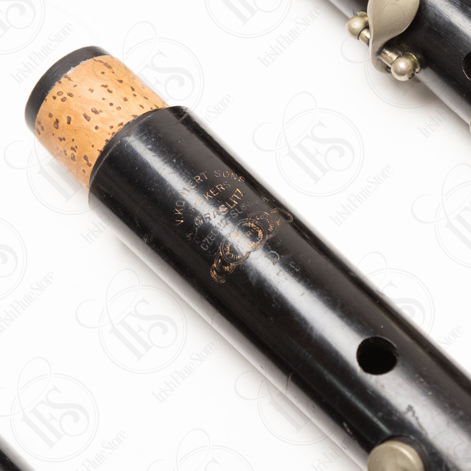 V. Kohlert & Sons (V. Kohlert SΓΆhne) was a prominent woodwind manufacturing firm based in Graslitz, a town in the Bohemian region that was part of Czechoslovakia during the interwar period and is now Kraslice in the Czech Republic. The Kohlert workshop has roots stretching back to the mid-nineteenth century and became well known for producing a wide range of woodwinds, including clarinets, oboes, and flutes. The firm was one of several respected makers operating in the Graslitz area, which was a major center of musical instrument production in Central Europe for generations. The "Czecho-Slovakia" stamping with the hyphen suggests this instrument dates from the period between the founding of the Czechoslovak state in 1918 and the mid-twentieth century, though Kohlert's manufacturing tradition extends earlier than that. After World War II and the expulsion of ethnic Germans from the Sudetenland, members of the Kohlert family relocated to West Germany and continued instrument making there.