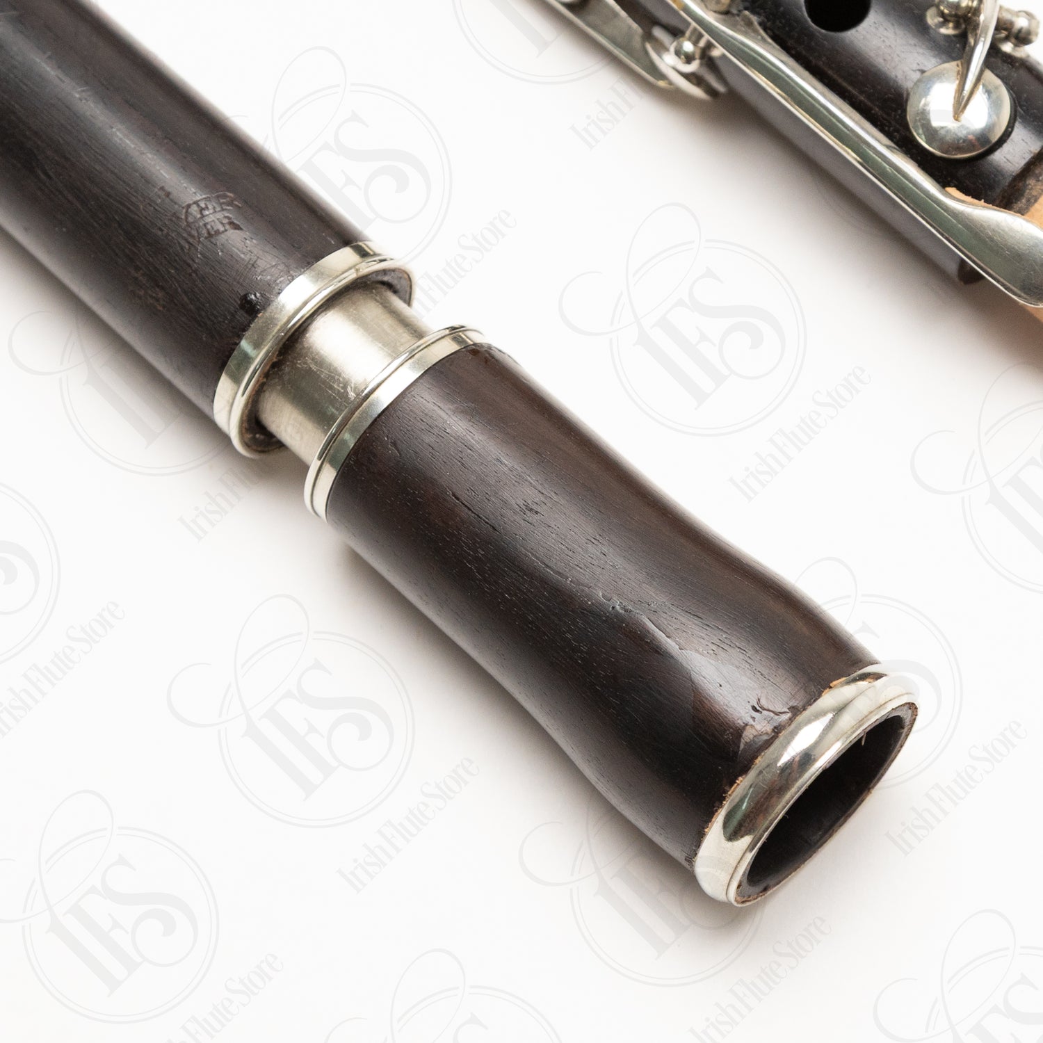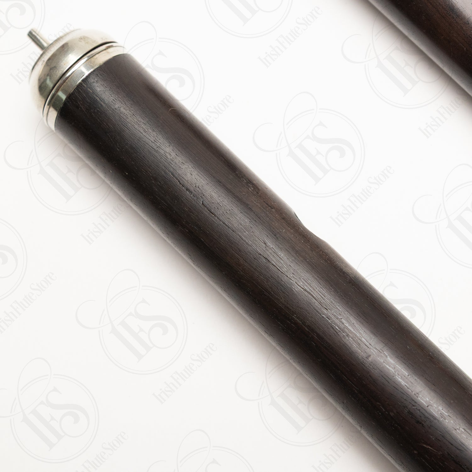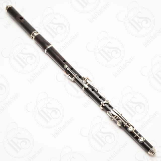 The flute plays approximately 20 cents flat from A=440Hz in its current state. The tuning slide is fixed in place due to an amateur repair job that left excess superglue in the mechanism. The instrument could be brought up to modern pitch if the tuning slide were professionally worked on to restore its functionality.
