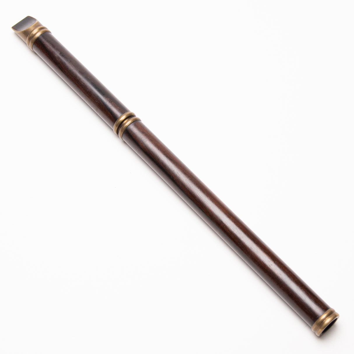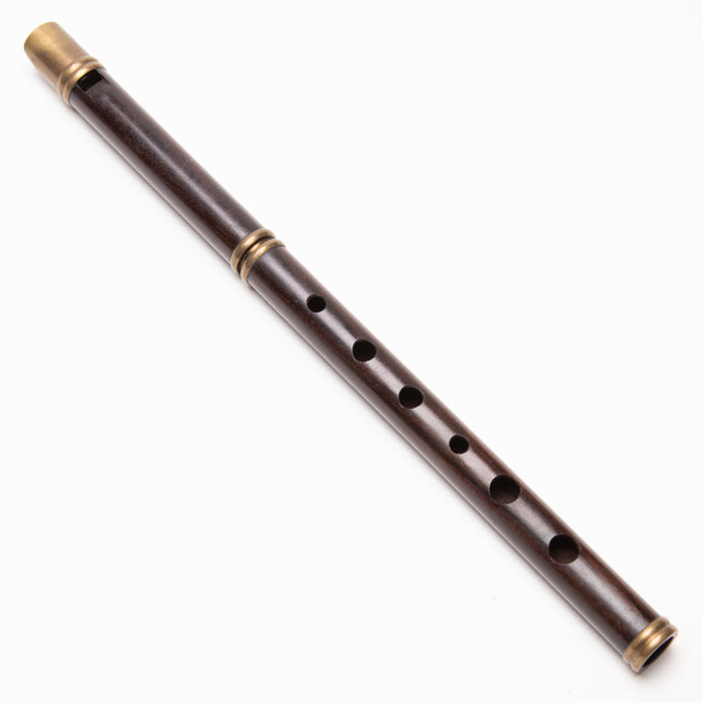 Good player in decent shape. Brass has patina on it. Hasn't been babied so if you're looking for a wooden whistle that is well "seasoned" that you probably don't have to worry about humidifying (as long as it doesn't get too dry), this would be a good option as there are no signs of cracking. Solid player!