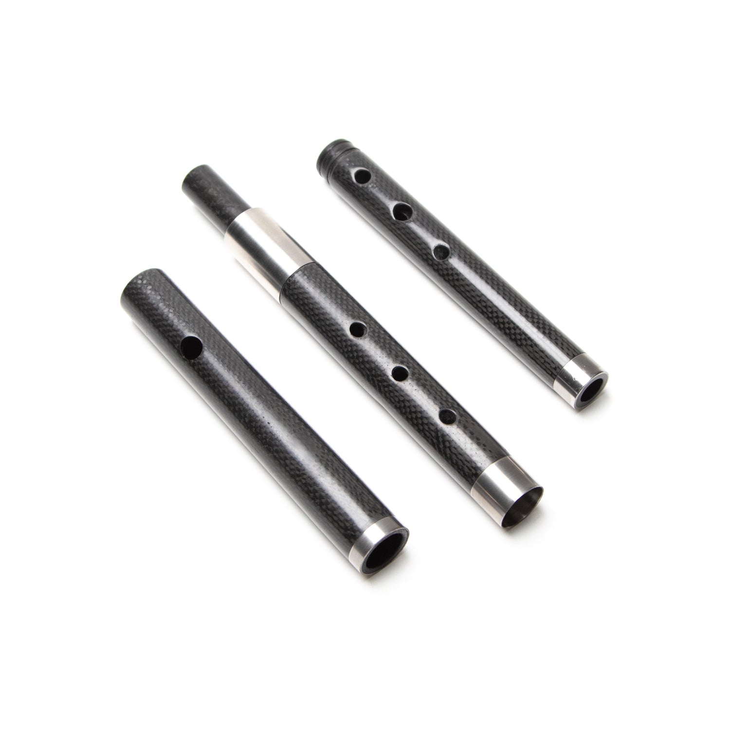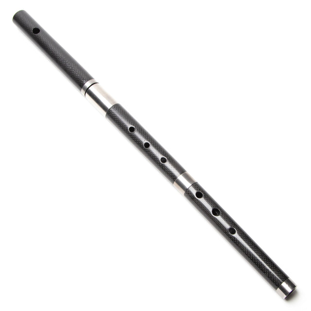 We also now offer a Traditional Irish Flute in D with silver flute finger spacing for people with small hands and/or Boehm-system flute players. This is accomplished with angled thin-walled carbon tube tone hole chimney extenders (patent pending).