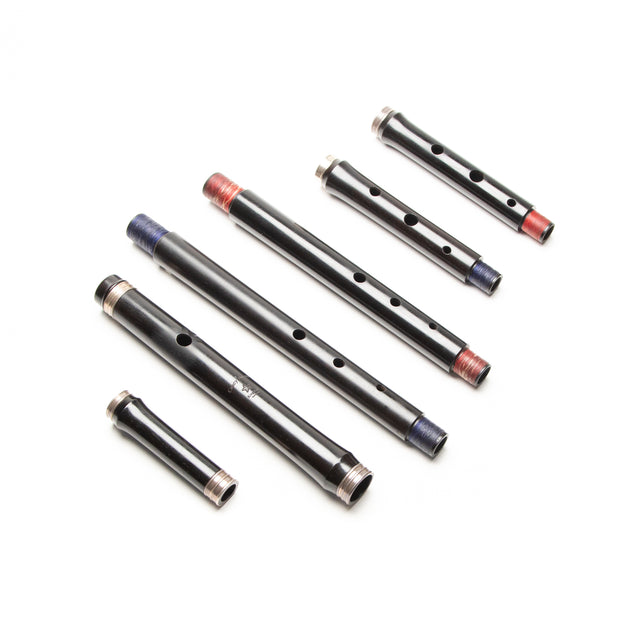 Nice low A/Bb set from Casey Burns. One head joint and foot matches with split A and Bb sections. Holes 3 and 6 are offset to make the reach more manageable.