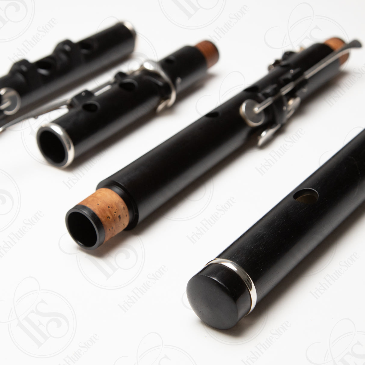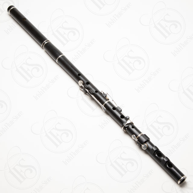 This 6-key flute by Dave Copley is crafted in African blackwood with silver keys and rings. It offers excellent intonation, fast response, and a comfortable reach, even for players with medium-sized hands. The tone is rich and focused, and the flute includes a tuning slide for precise adjustments.