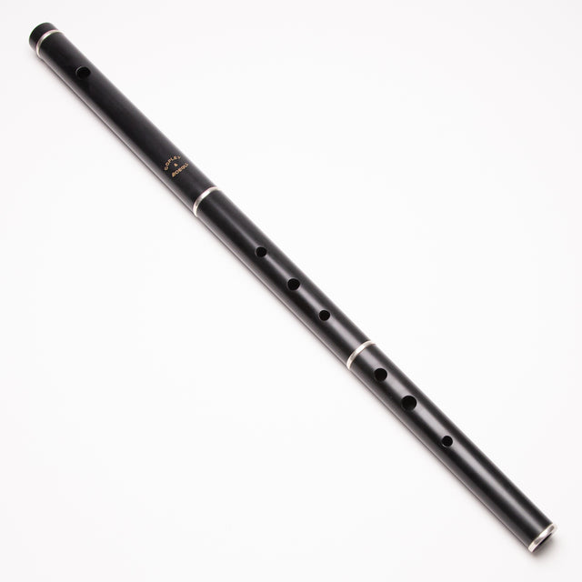 Concert D flute, in delrin, with silver rings and modern cut embouchure, made by Copley and Boegli. Excellent condition. Excellent flute for Irish music at all levels. Maintenance free and dependable. Great tone and volume. Embouchure cut is very forgiving and well suited to new flute players.