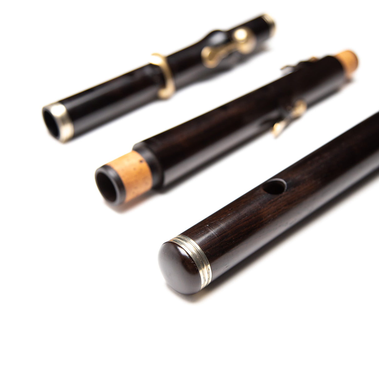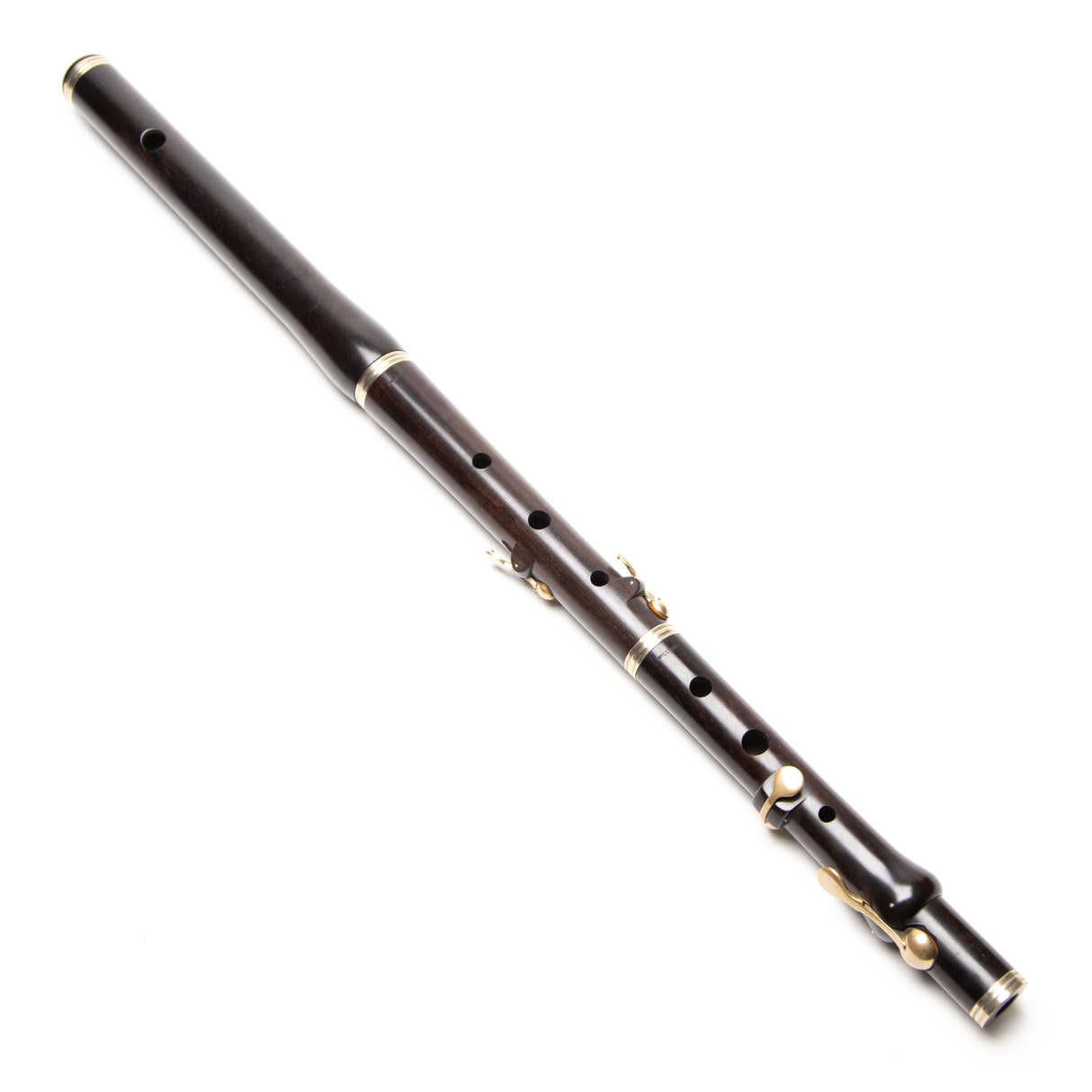 Lovely Rudall type flute. Medium sized holes. Perfect for the player looking for a fully chromatic flute with holes that are easy to cover yet still has good power for sessions. Looks as though it has never been played - really mint! Also, lovely workmanship. Handsome natural patina on the keys & metal work.