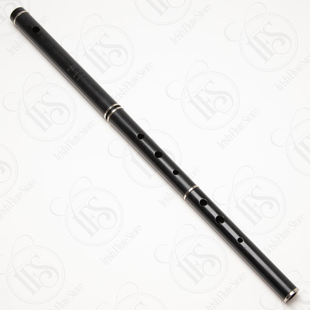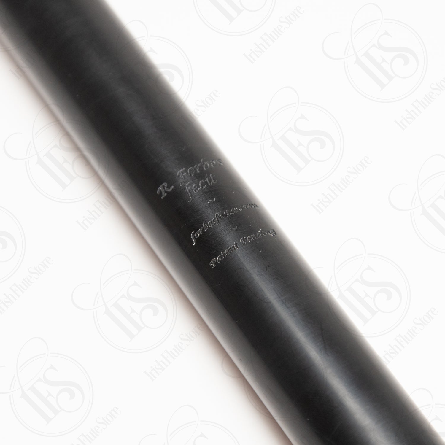 Three-piece Delrin Pratten-style D flute by Rob Forbes. Features large tone holes for powerful volume and a wide, strong tone. Designed for players seeking full projection and robust sound, this model offers excellent tuning and quick response across the range.
