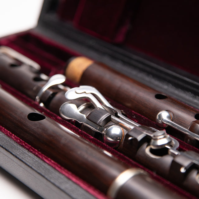 Quite simply one of the finest flutes to grace our shop in all the years. Strong, energetic tone. Huge bottom D and foot keys that pop out equally strong low C and C# notes! Cocus comes from the French Lot family and is at least 50+ year old stock!