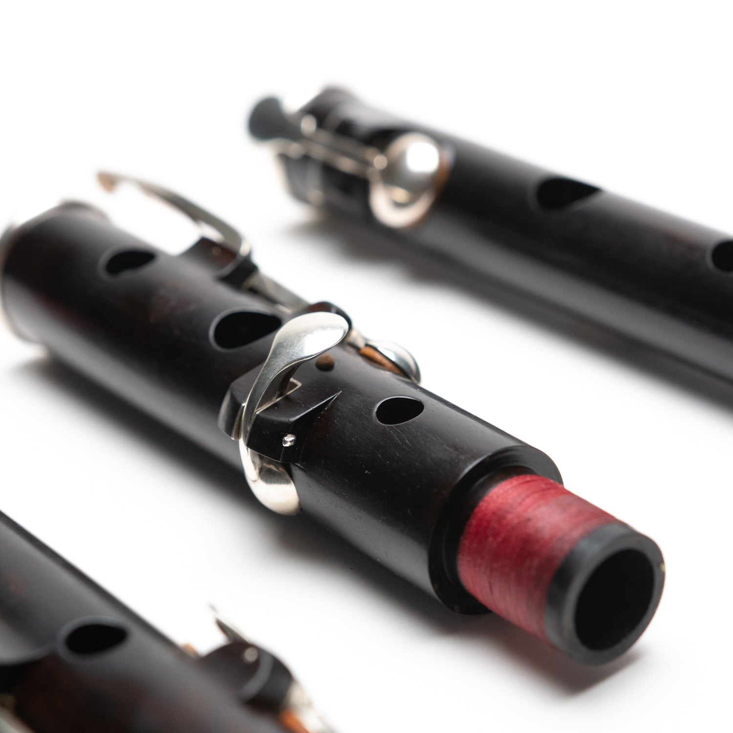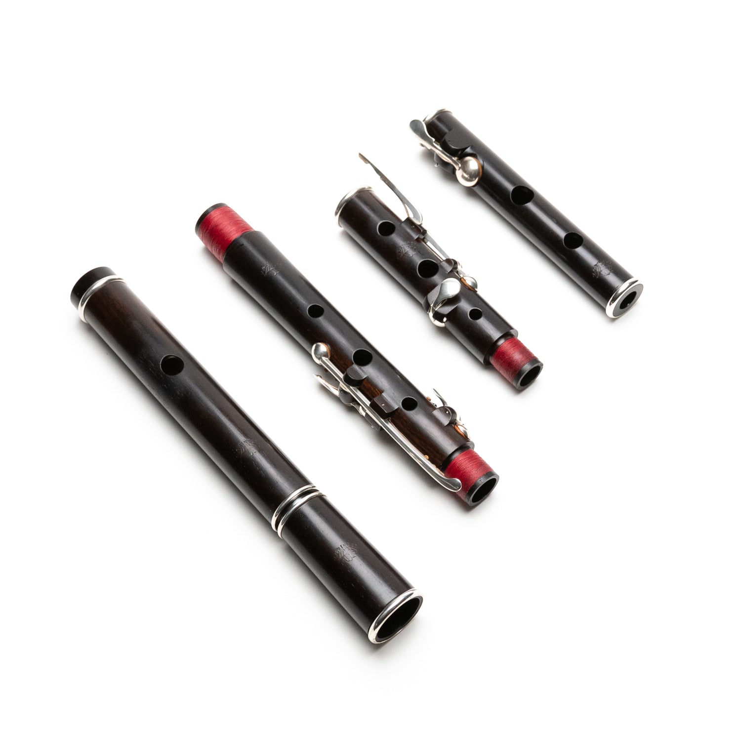 Blackwood & Silver. Medium holes. This is his classic Rudall style design, not the more recent larger bore / larger finger hole model. Plays bright and crisp. Great power and energy throughout the range. Finger articulations speak quick and clear thanks to the medium sized finger holes and comfortable finger spacing. Excellent intonation.