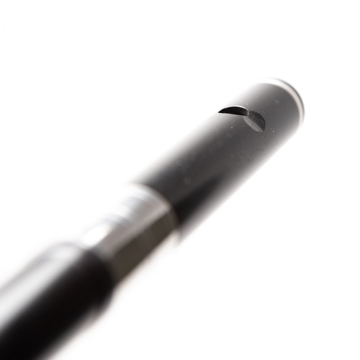 Blackwood & Silver Pratten style flute with cutaway embouchure. Beautiful silver work. Strong tone & volume with excellent intonation. Unlined head.