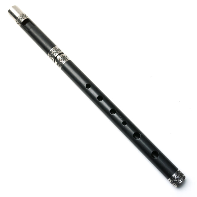 Handsome looking whistle with it's celtic knotwork engravings and black delrin body. Wider bore gives it a bit more "wideness" to the tone. Has that signature Hermit Hill chiffy/woodsy bark to the tone.