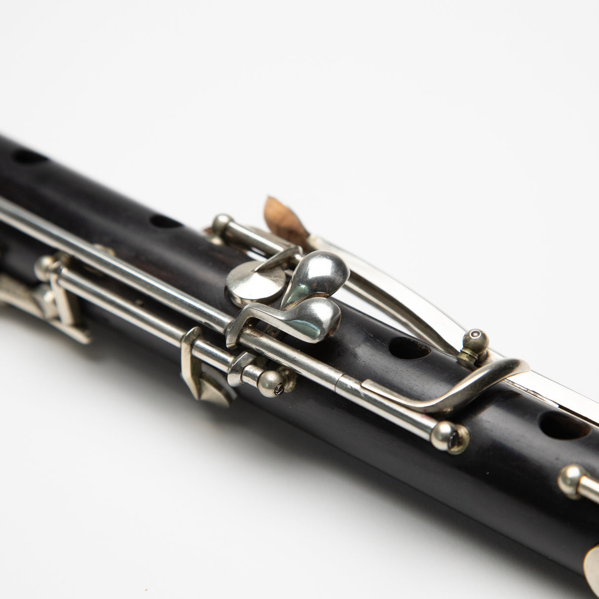 This flute has been modified to play comfortably at A=440 Hz, with adjustments to the tone holes and bore. The embouchure cut is outstanding, allowing for effortless playability and a remarkable tone. Despite a professionally repaired socket crack in the foot, the barrel and headjoint have remained crack-free, a testament to the careful seasoning of the wood during its construction.