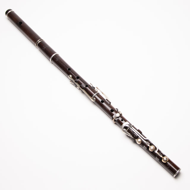 This flute features small holes and plays similarly to a Rudall. It rewards a player with a refined and tight embouchure, offering a decent amount of power. The instrument plays best at A=452 Hz but can be played at A=440 Hz with the slide extended further, though the low D may go slightly flat unless given a strong punch.