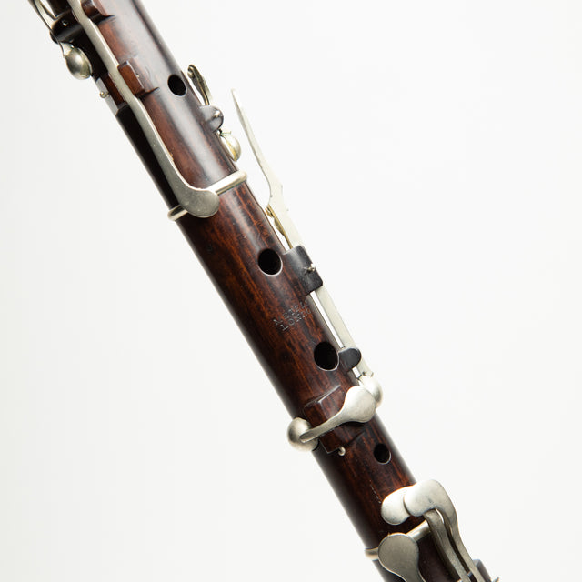 Cocus & Nickel Silver. Stamped Wylde on headjoint and barrel (also indicated on Eb key). Stamped Metzler on other sections. Handsome keywork, beautiful Cocus.