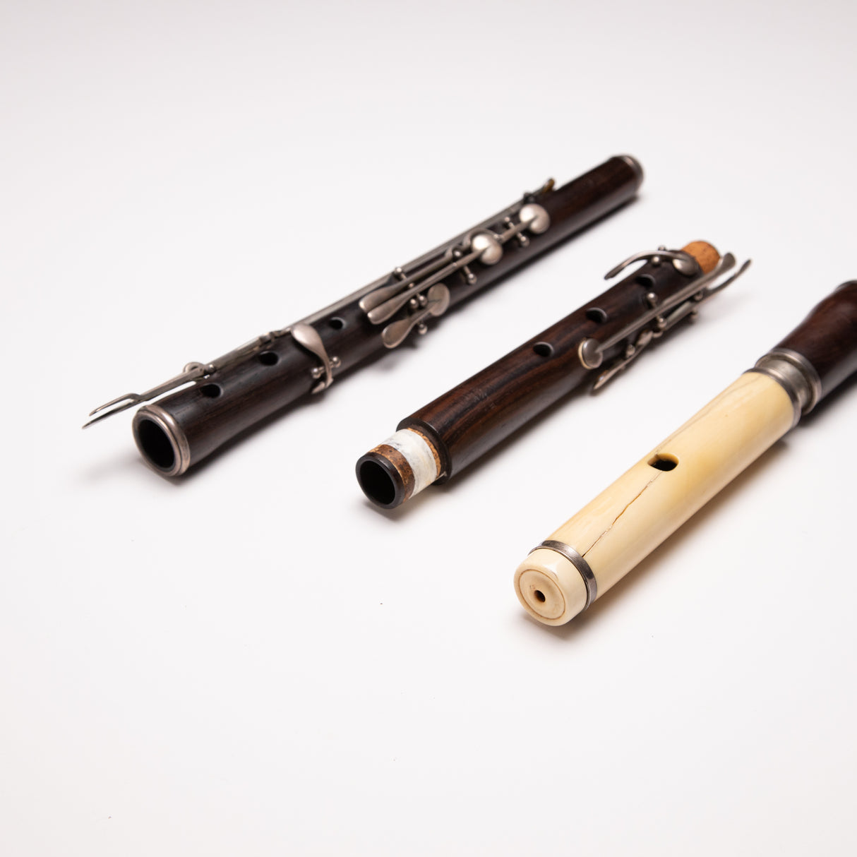 The headjoint has hairline cracks (as pictured) and needs repair. Due to the cracks, it is not currently playable, but the issues can be addressed with proper restoration.