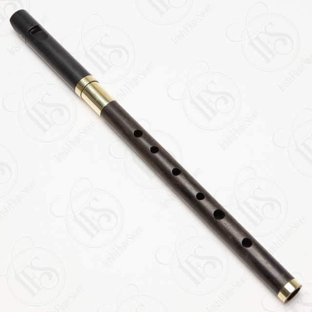 This is a new old stock whistle crafted by Gene Milligan, serial number 1999. It features a warm tone with a touch of chiff and offers a strong presence throughout its range. The upper second octave requires a bit of push to reach the top notes. Gene has since stepped back from whistle making, making pieces like this increasingly rare.