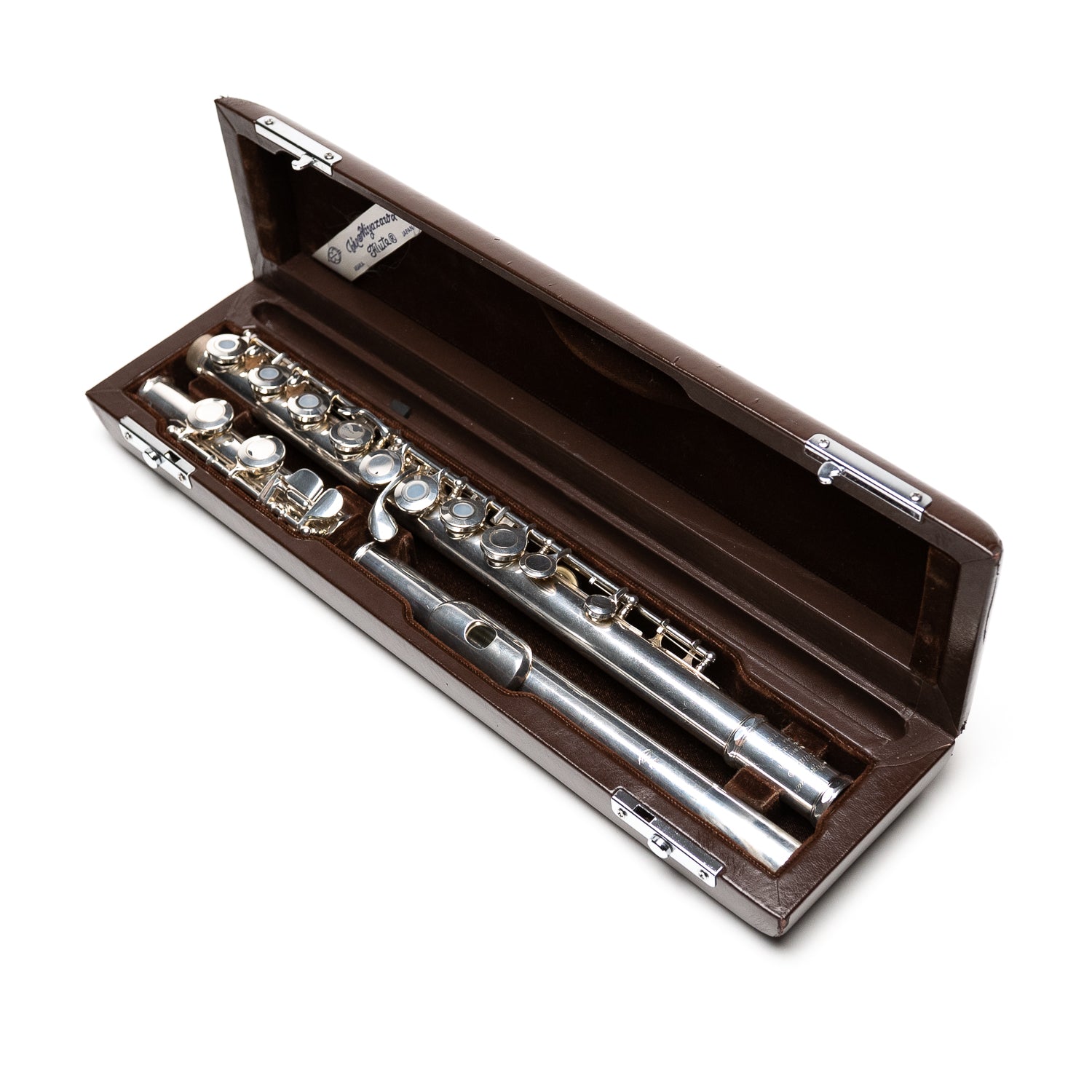 No, not an Irish flute but a lovely handmade Boehm flute by Miyazawa of Japan. To get more info on this flute, I called Miyazawa. They said that this flute would fall somewhere between their current 202 and 402 models ($4k and $6.5k respectively) and that they suspected this flute was made in the 1980s. Serial number is 39126.