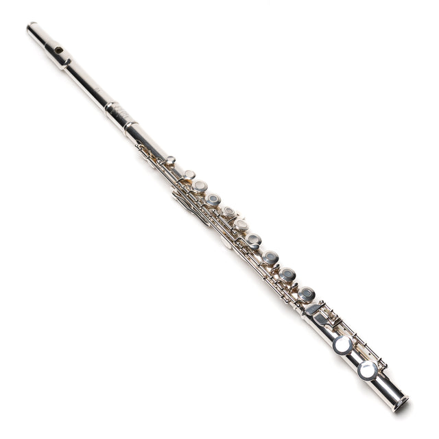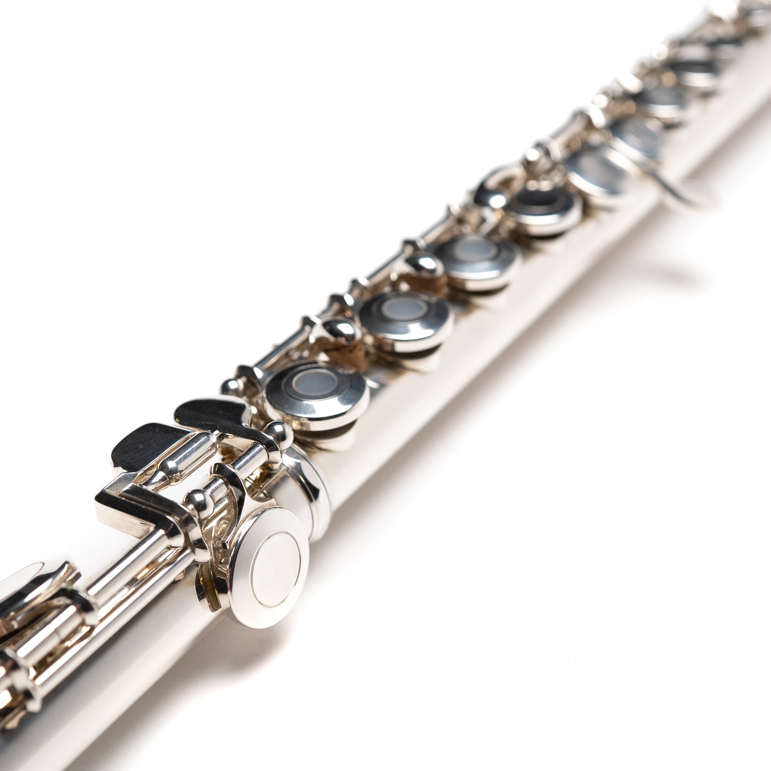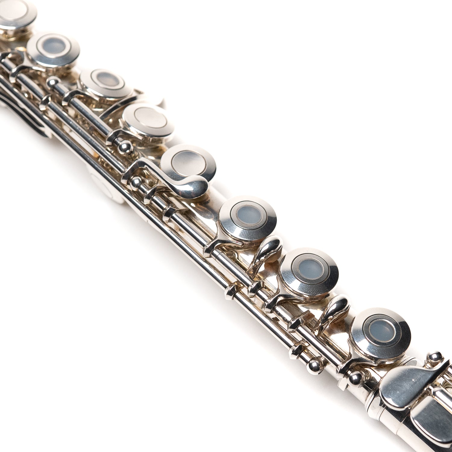 This flute is silver plated PCM. PCM primarily consists of silver and copper, along with other precious metals which offers a brilliant sound, quick articulation and outstanding projection.