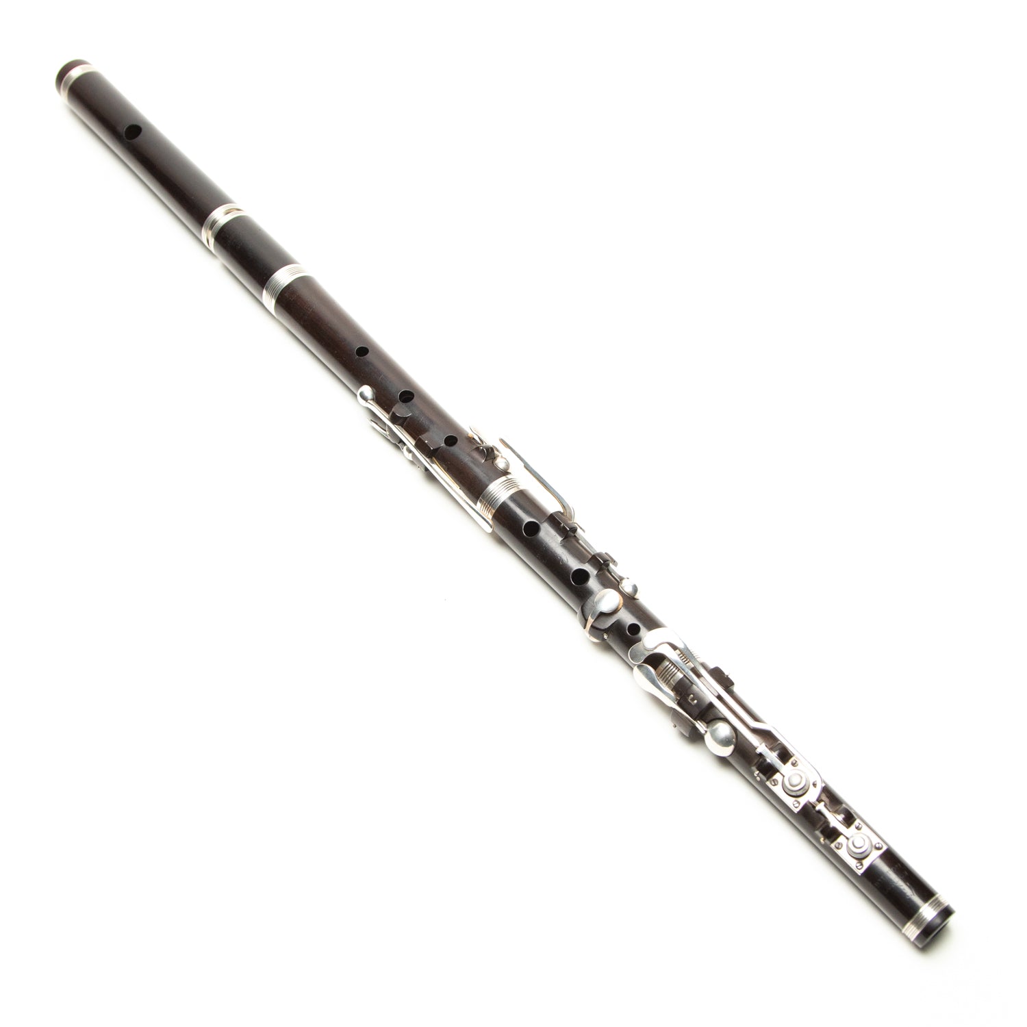 Great playing small holed 8-key flute by Bilton. Great player no doubt thanks to Patrick Olwell's restoration and revitalization work. Plays well at A440hz with the slide pulled out 3/8" or so. Nice strong bottom D. All the keys work great.