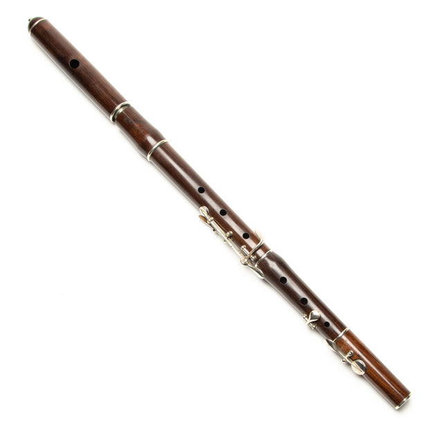 Lovely Cocus & Nickel Silver F flute by Gautrot. Perfectly matched Cocus (hard to find these days!). Flute is very efficient with breath. Capped tenons and lined sockets.