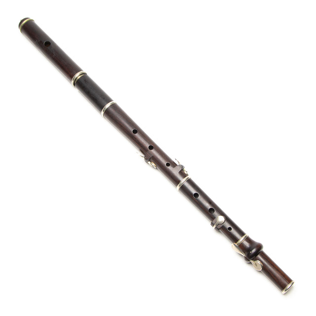 Always a special thing to get in an antique flute restored by Patrick Olwell. This one he did a good bit of reboring and retuning. Plays great at A=440hz. Will make a perfect flute for someone wanting a flute with smaller holes (those out there with smaller hands/fingers) that still wants a flute with a good bit of energy. Not a session cannon but a sweet and energetic flute that will hold its own in smaller group sessions or at home, whether playing Irish traditional music, classical, etc...