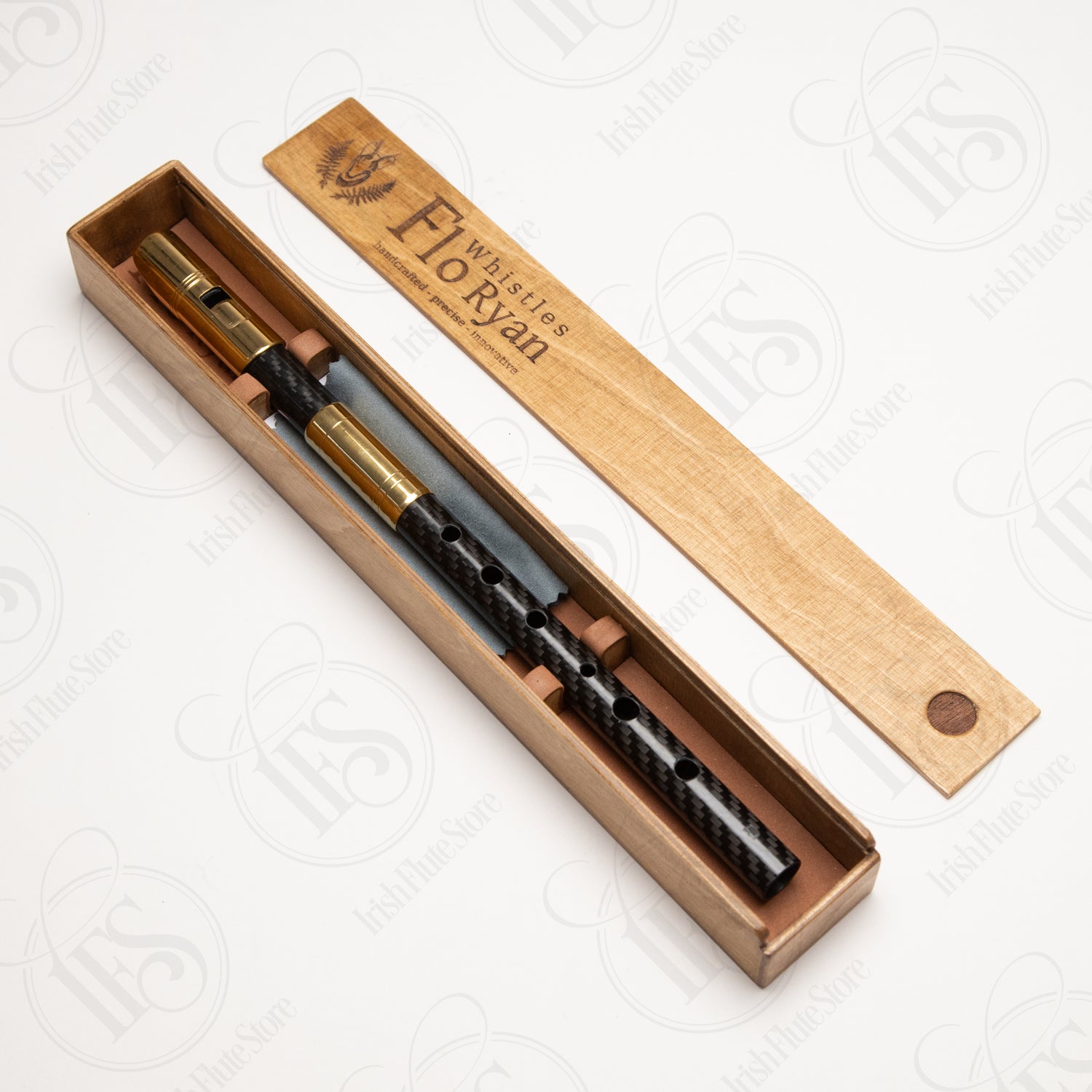 This FR premium set in D is a gold-plated brass, carbon fiber whistle offering excellent tuning and a clear, responsive voice. The upper register plays with ease and the first octave is strong.