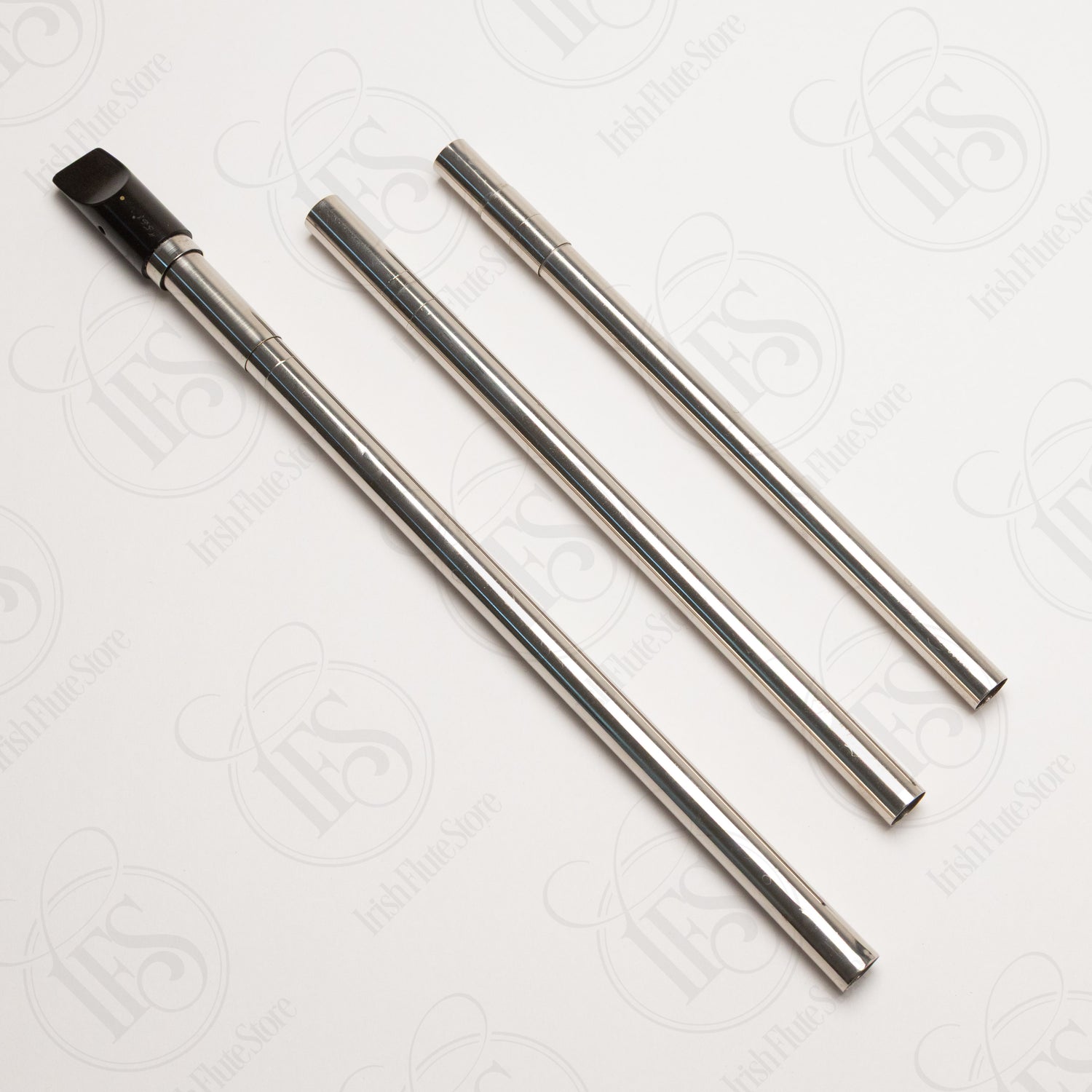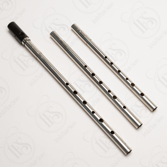 This Patrick O'Riordan Traveler whistle set includes interchangeable bodies in C, D, and E♭ with a shared headjoint. The head features the Traveler series lanyard hole through the fipple block and shamrock engravings. The C and D bodies have excellent tuning and response, while the E♭ plays well though with slightly less precise intonation. The headjoint is an excellent example of O'Riordan's craftsmanship, delivering beautiful, clear tone.