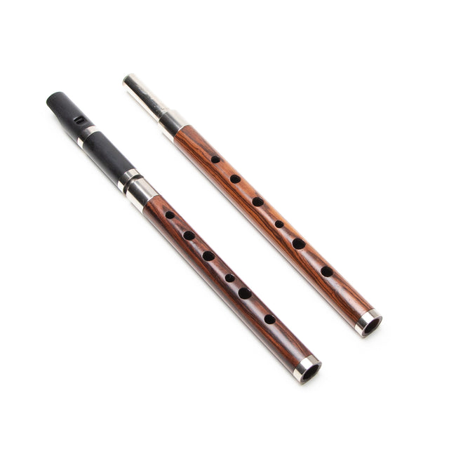 Lovely C/D set by the late/great Patrick O'Riordan. Has that classic pure/clear/glassy O'Riordan tone. Great players with great intonation! Unsure of what type of Rosewood this is - our guess is Kingwood or Cocobolo.