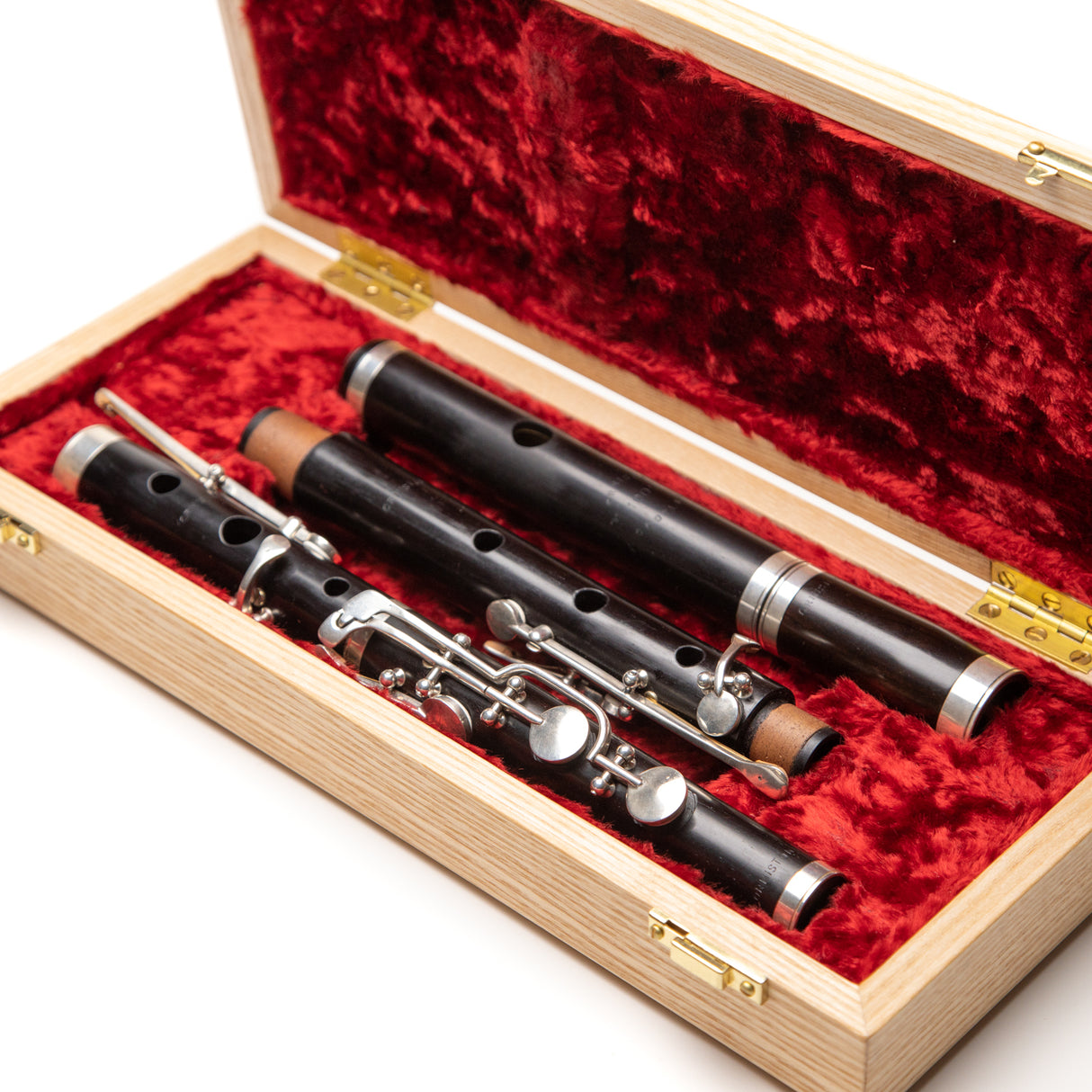The wood we use is air dried and worked gradually in several stages to allow the wood to settle between the stages of the production process. Silver rings are added to the completed flute."