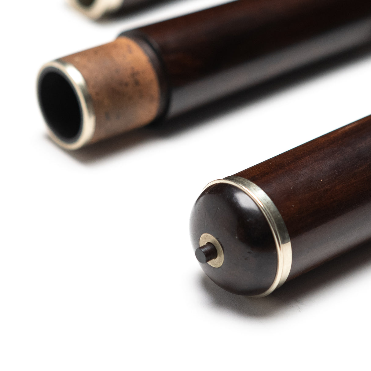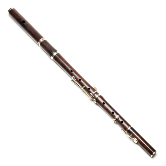 "Although not stamped, this appears to have been made by one of the better, established makers in Paris, judging from the quality of the workmanship and the beautiful tone and response. These makers frequently sold unstamped flutes to shops that then stamped them with their own name. I really like this head joint in particular (beautifully undercut and shaped) and one of the more responsive French flutes I have restored. Plays great at A440 after a bit of re-tuning and touching up the bore with reamers."