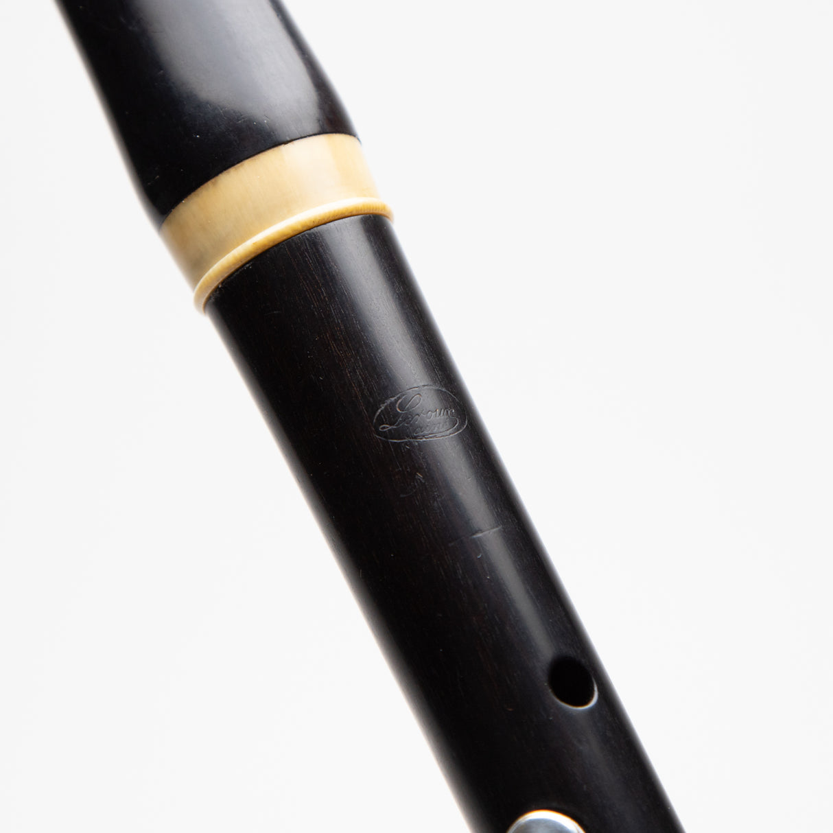 Cocus, Silver (hallmarked) & Ivory. Great player at A440hz. Though small holed, it plays with with excellent energy and power. Beautiful tone. Patrick's work on this flute included some slight boring and tuning. Still has it's original smaller embouchure well intact - really great!