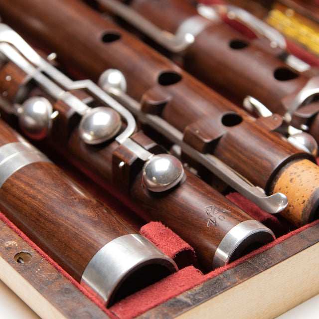 Peter Noy clearly pulled out all the stops when he made this special one of a kind instrument. Where do we start? Is it the flawless matched Cocus wood or the incredible keywork - including a right hand touch option for Bb? Peter's flutes are modeled after Nicholson type flutes. I'd say this one plays between a Nicholson and a Pratten. Big tone and volume while still being extremely expressive and responsive. And the foot keys! Peter makes some of the best foot keys I've played - C# and C speak with ease and power - snappy! Oh, and interchange the center section with the Eb body and you've got two flutes in one! Seriously tempted to purchase this one for myself if I wasn't so joined at the hip with my main flute (6-key Cocus Olwell Nicholson).