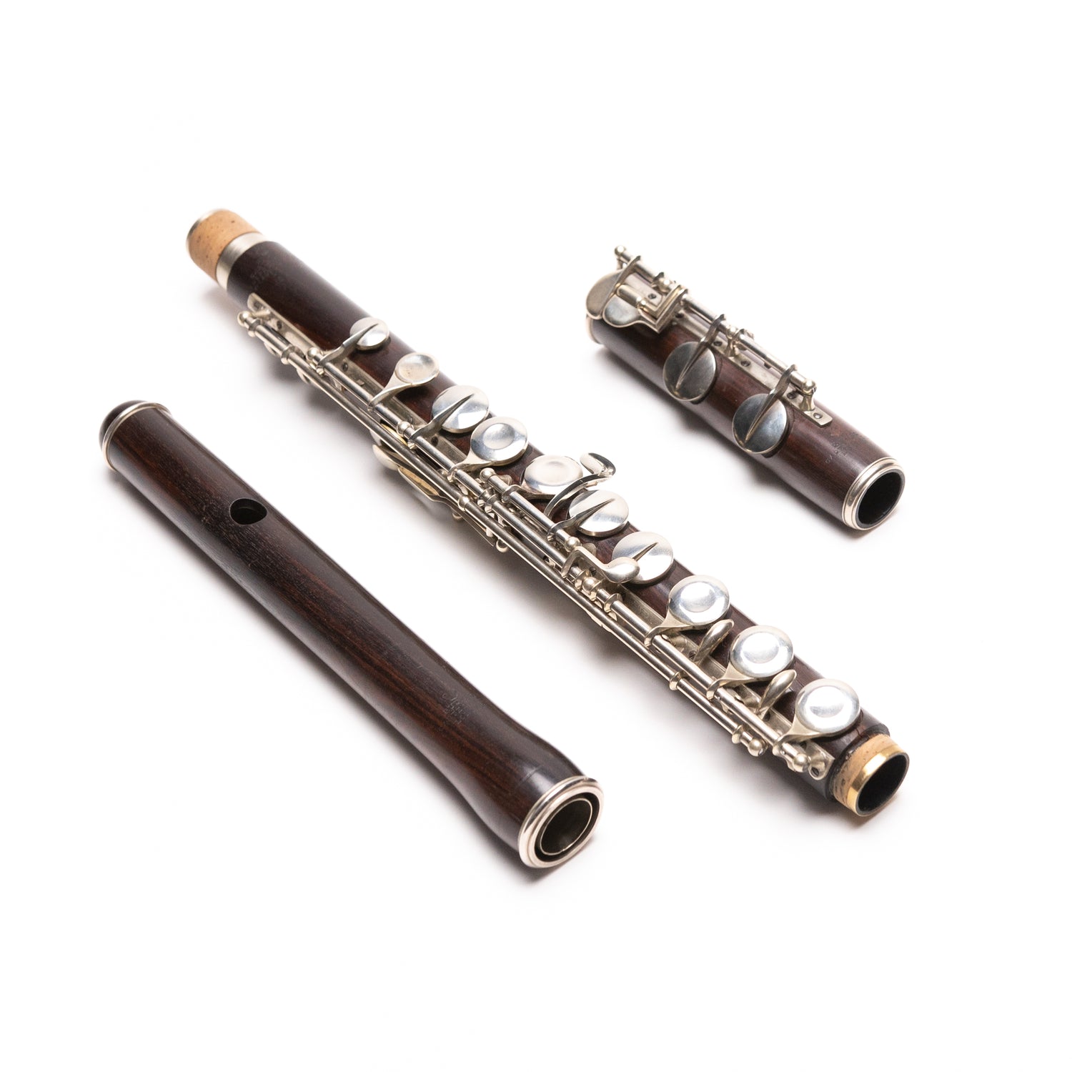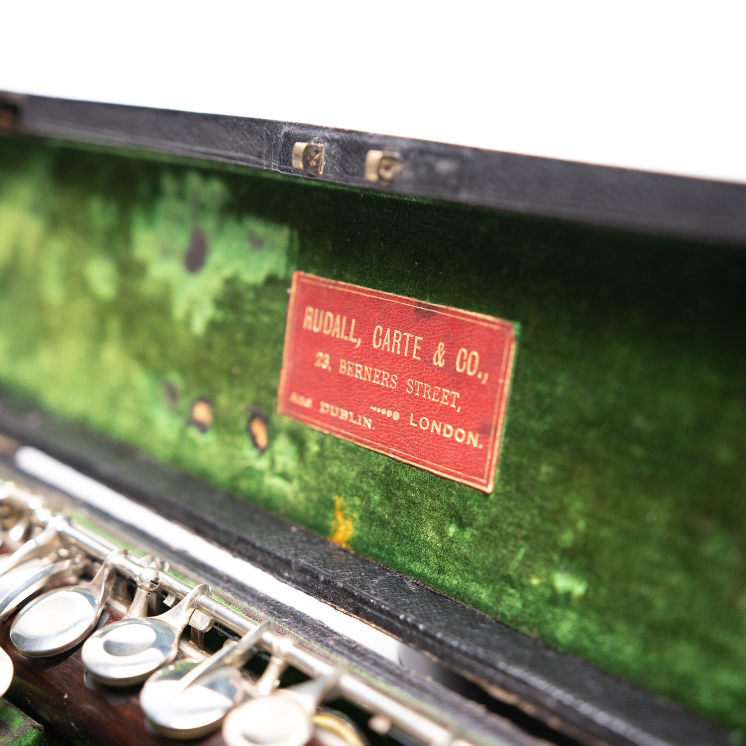Rudall Carte & Co concert flute number 6523 (indicating manufacture date of 1923). Made from Cocus wood, which is in excellent condition. German silver keywork. Sounding length - 581mm. High Pitch / A=452. Original box. Has just been beautifully restored and fully serviced by Kaiya Mitchell from KM Woodwind. Kaiya's comment on completing the work, "I've just double checked the flute and it plays very nicely for me! It's a really beautiful instrument." Restoration included sealing some hairline cracks on the right tenon of the body of the flute.