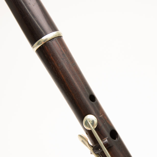 This flute, stamped AL (Alexander Liddle), originates from the late/great Peter Noy collection. It has undergone restoration with new pads and corks, resealed headjoint lining, and sealed cracks in the headjoint. Repairs to the body and blocks were also completed. Intonation is excellent when tuned to A440hz, with the tuning slide extended about 11mm, and it features medium to medium-small tone holes. The main body 6-keys work flawlessly, while the bottom C and C# keys will need additional work to function properly. The headjoint is missing a ring, and we can recommend a repair shop post-sale for crafting a replacement (as well as addressing the foot keys).