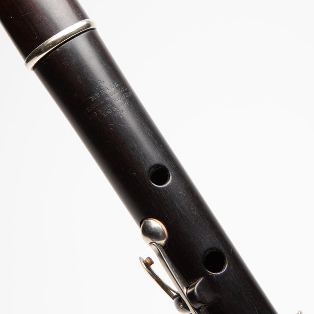 Condition: Restored Antique. Sealed cracks in headjoint, barrel, right hand and foot sections. Repair/graft to short F block. Upstream ring on barrel section is a brass replacement.
