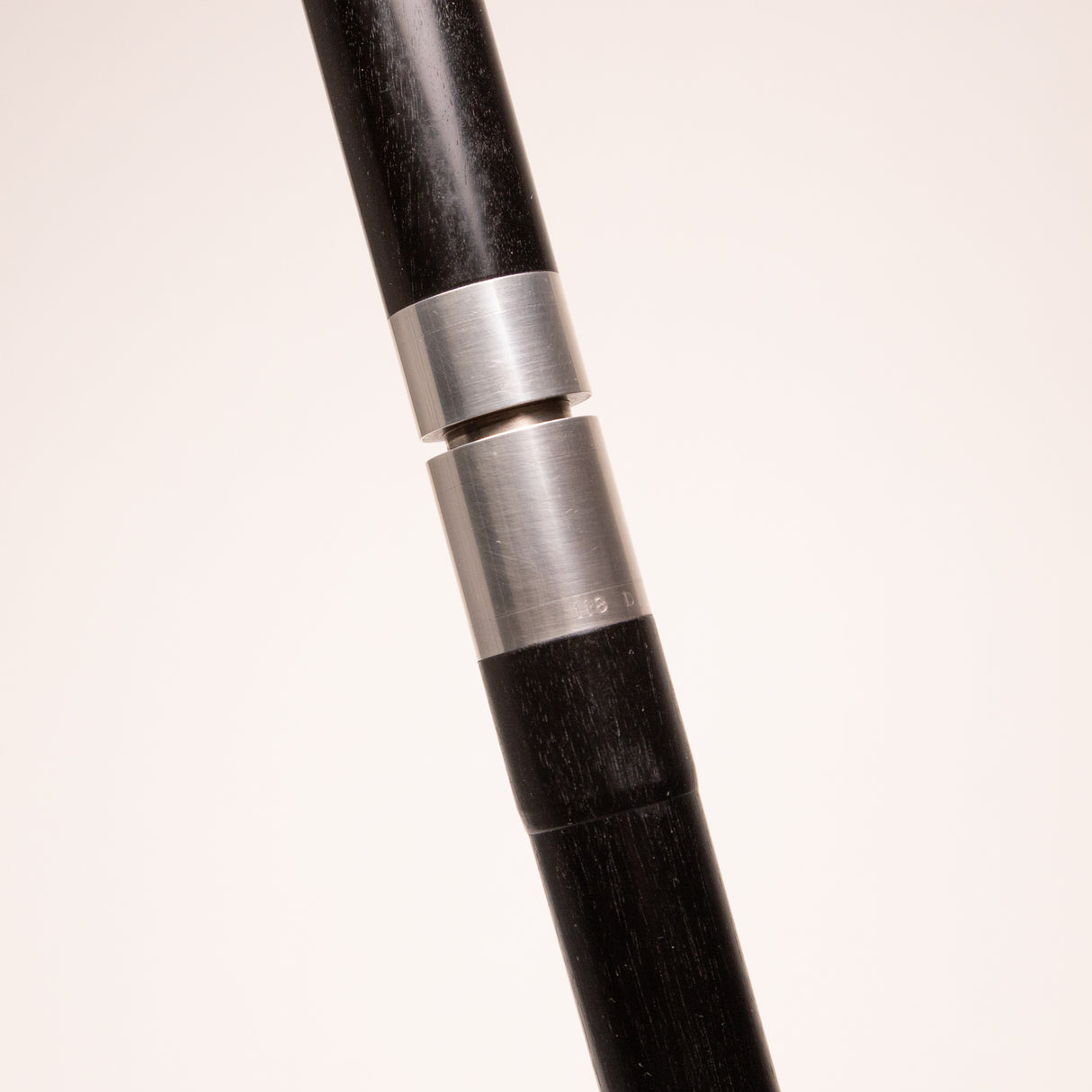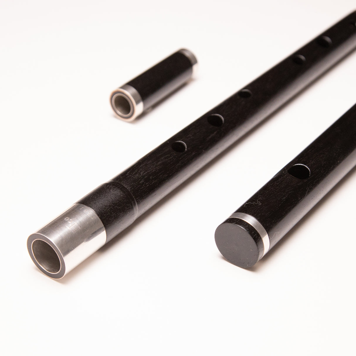 Skip Healy African Blackwood keyless D flute with silver rings and a tuning slide. This Pratten-style flute features a cutaway embouchure and an unlined head. Includes the original lined soft case. Serial #118 (~2005). Strong player with excellent intonation.