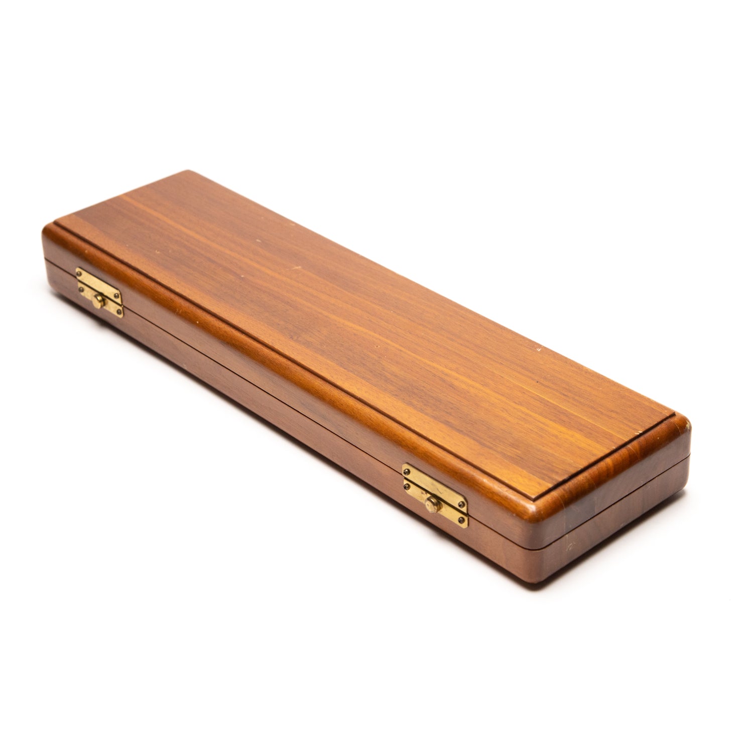 Not sure about the wood on this one - nice and light in the hands though. Medium sized finger holes. Good power and response. Excellent intonation. Keys are nicely made from nickel silver. Great price for a fully keyed flute!