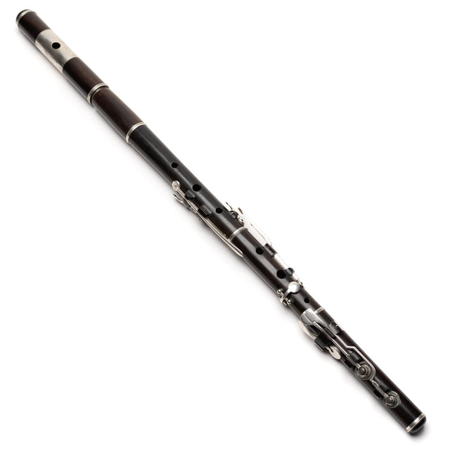 A great strong player with excellent intonation. Keys work great, even to bottom C! Similar tonal character to a medium holed Rudall type flute. Great for Irish trad or even getting into classical/baroque repertoire and beyond!